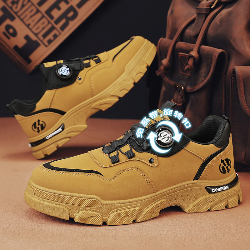 男性靴秋冬新作ファッション回転ボタン大黄靴アウトドア工装工事現場低組登山厚い底マーティンブーツ
