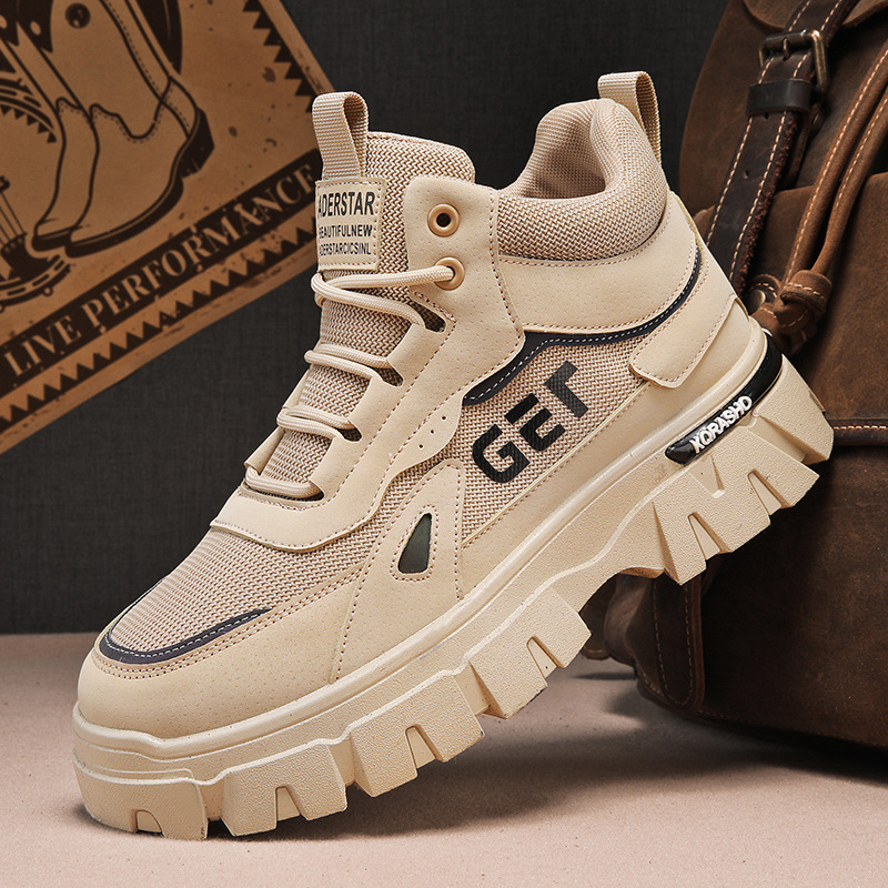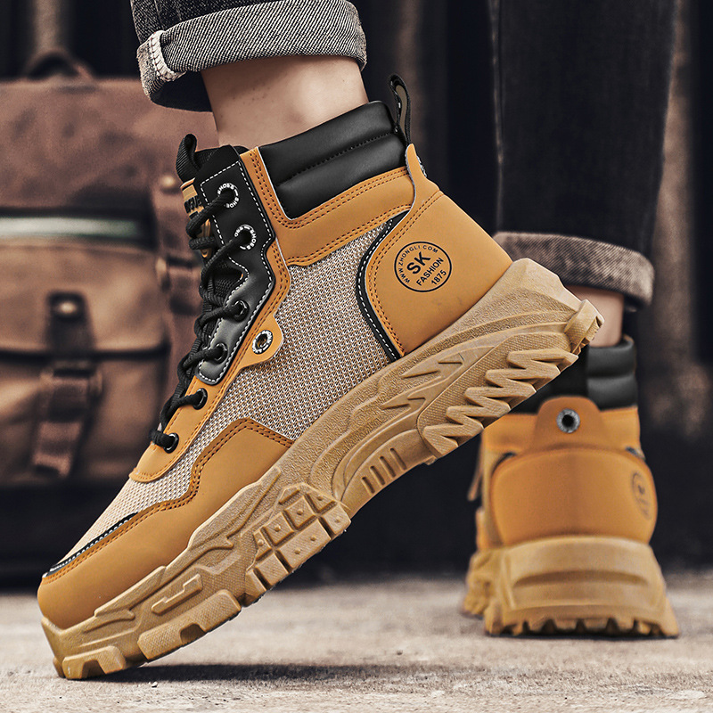 2024秋冬ファッションブランド中邦工装スポーツシューズ男性カジュアル通気ネット面厚い底板靴アウトドア作業靴