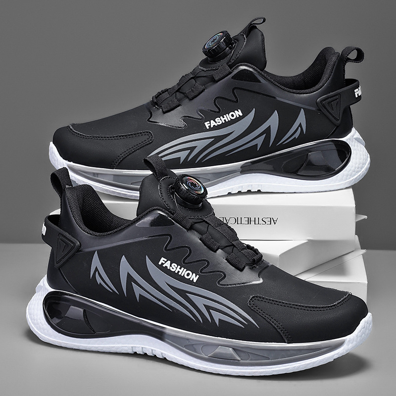 男靴秋の2024新型スポーツランニング靴厚い底中学生回転ボタン衝撃リラックス靴