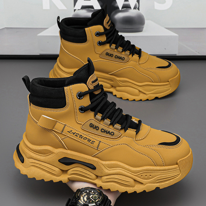 男の靴秋冬の高筒の厚い底の工装の靴の男性のレジャーの運動靴の韓国版の潮流は高くなります。