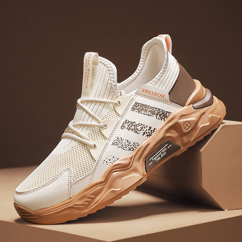 ファッションシューズ秋の通気性の軽いネットの厚い底のカジュアルな靴の男性の回転は運動靴の学生の男性のランニングシューズを掛けます。