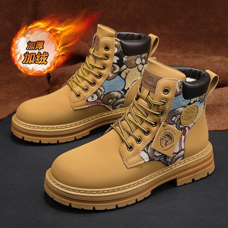 冬の2023年の新型高助運動レジャー工装マーティンブーツ男の厚い底にベルベットをつけて東北労働保護綿靴を厚くした