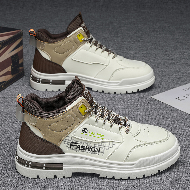 高帮潮靴韓国版秋冬レジャー皮パネル靴男性タイプの厚い底の滑り止めが高くなります。