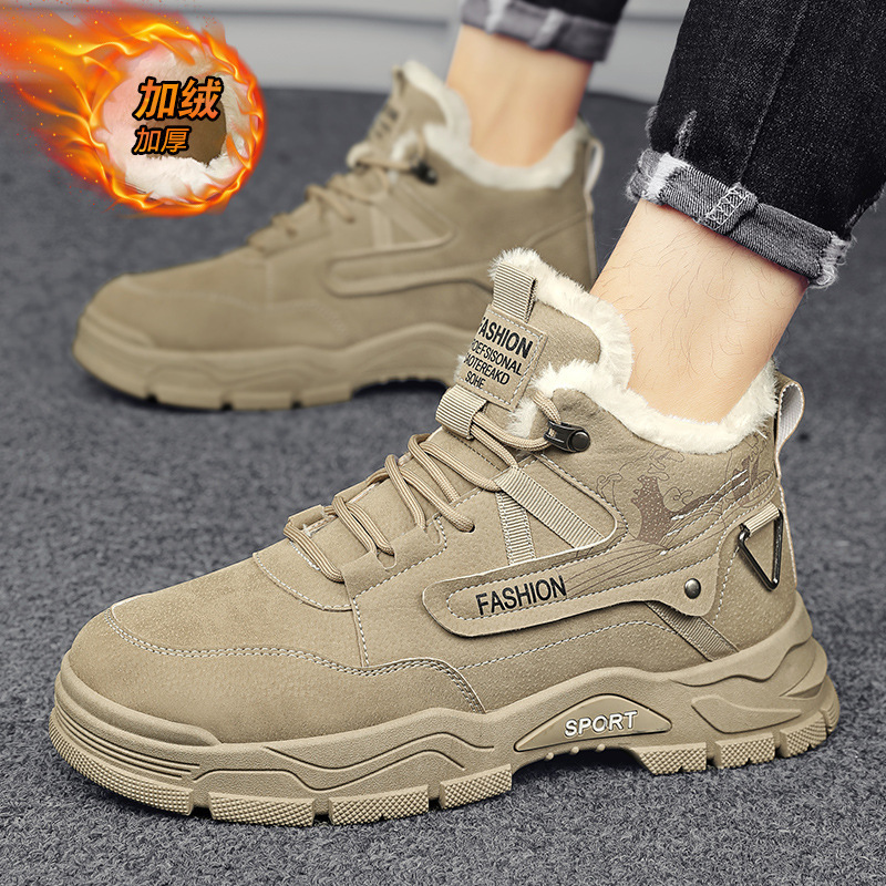 男性靴冬ベルベット保温綿靴男性滑り止め屋外工事現場仕事労働保険運動工装マーティン潮靴