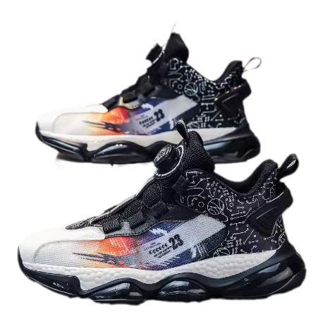 男性靴2023新型秋冬ネット通気レジャー運動靴国風青少年回転バックルバスケットボールファッション靴