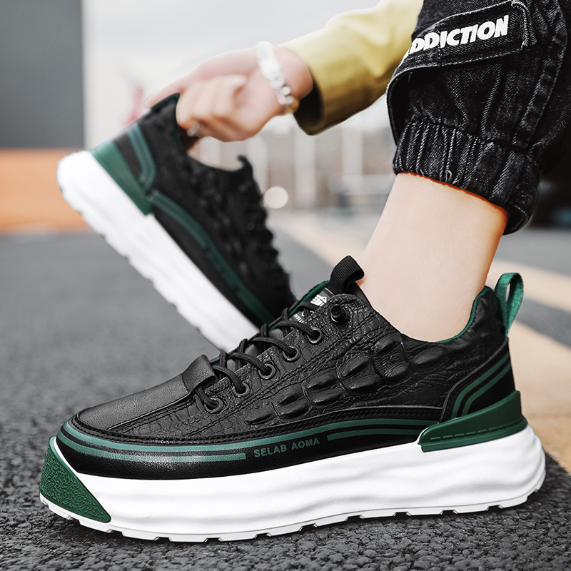 秋冬の新型ワニの紋様のレジャースケートボードの靴の韓国版のファッションの学生の運動靴の低い手伝いの労働保護の仕事の靴の男子