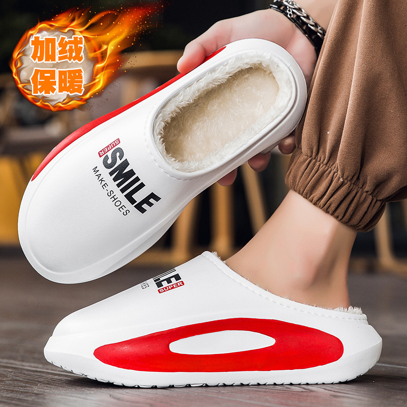 クロスボーダー文字包頭綿スリッパ女性冬の新型カップルかわいいベルベット保温糞感靴毛スリッパ男