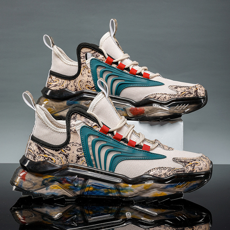 秋の中国風ファッション靴カラー透明底が低い靴下口のおじさん靴ネット布スポーツシューズ通気カジュアル靴
