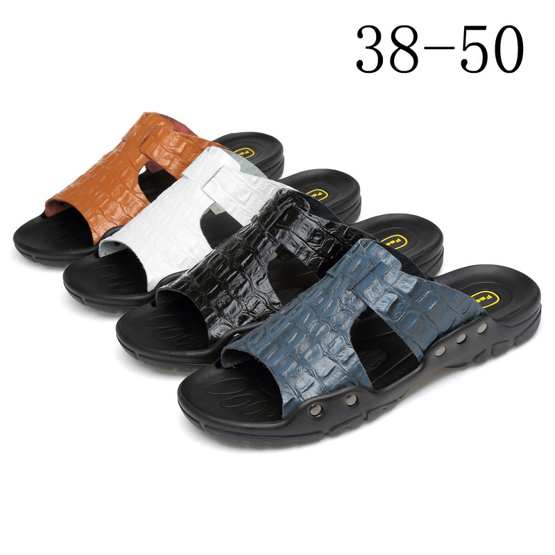 夏のビーチ靴の対外貿易の大きいサイズの48エンボスのワニの紋様の皮の男性のサンダルは足をかぶせます。