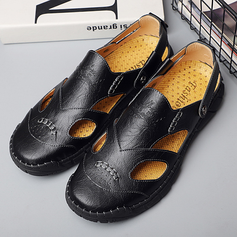 2021男性の新しいサンダル男性の夏の大きいサイズのビーチ男性の靴の頭のカバーの足の車の男性の靴の通気性のカジュアルシューズ