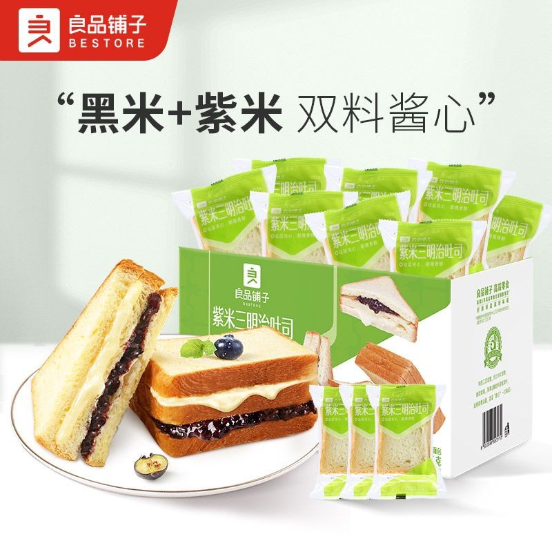 良品店紫米サンドイッチ555g箱全体の間食ギフトバッグ朝食レジャー食品ケーキ菓子トースト