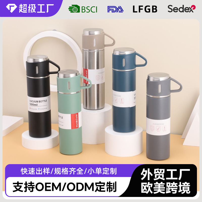 ビジネス保温カップセット304ステンレスストレート保温カップ1杯3蓋セットプレゼント保温カップ