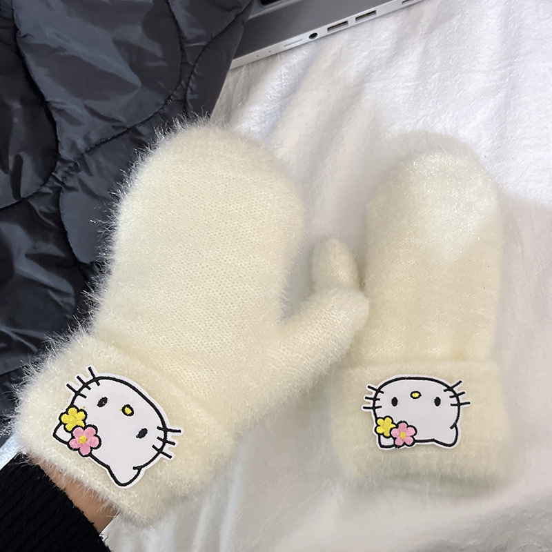 冬の新型毛むくじゃら防風kitty猫手袋女性冬保温韓国式厚手自転車防寒手袋