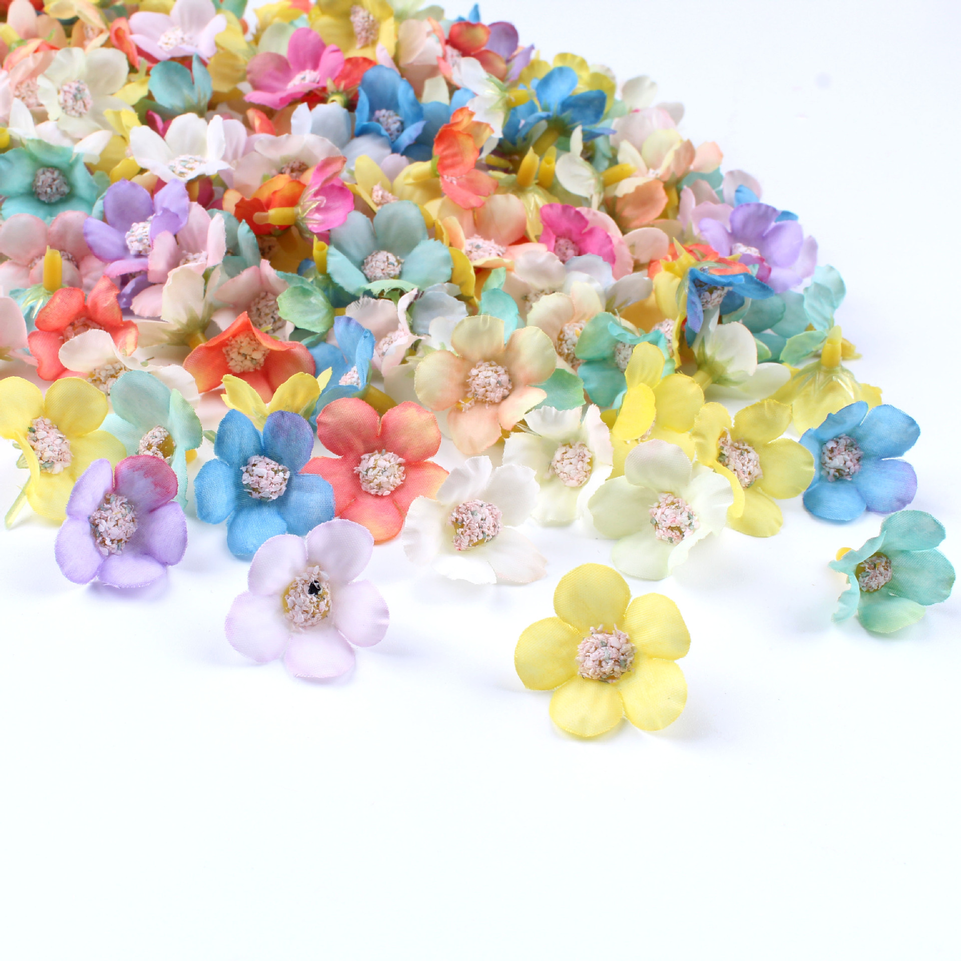 新しい花2cm多色のデイジーの花の頭のミニ絹の花の人工花の花輪の切り貼りの部品の家庭の結婚式の装飾