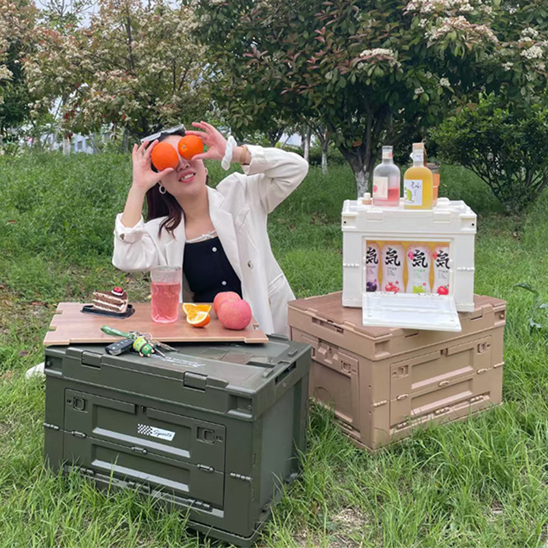 折りたたみ収納ボックス屋外キャンプフラップサイドドア車載収納ppボックス工業風大型プラスチック整理ボックス