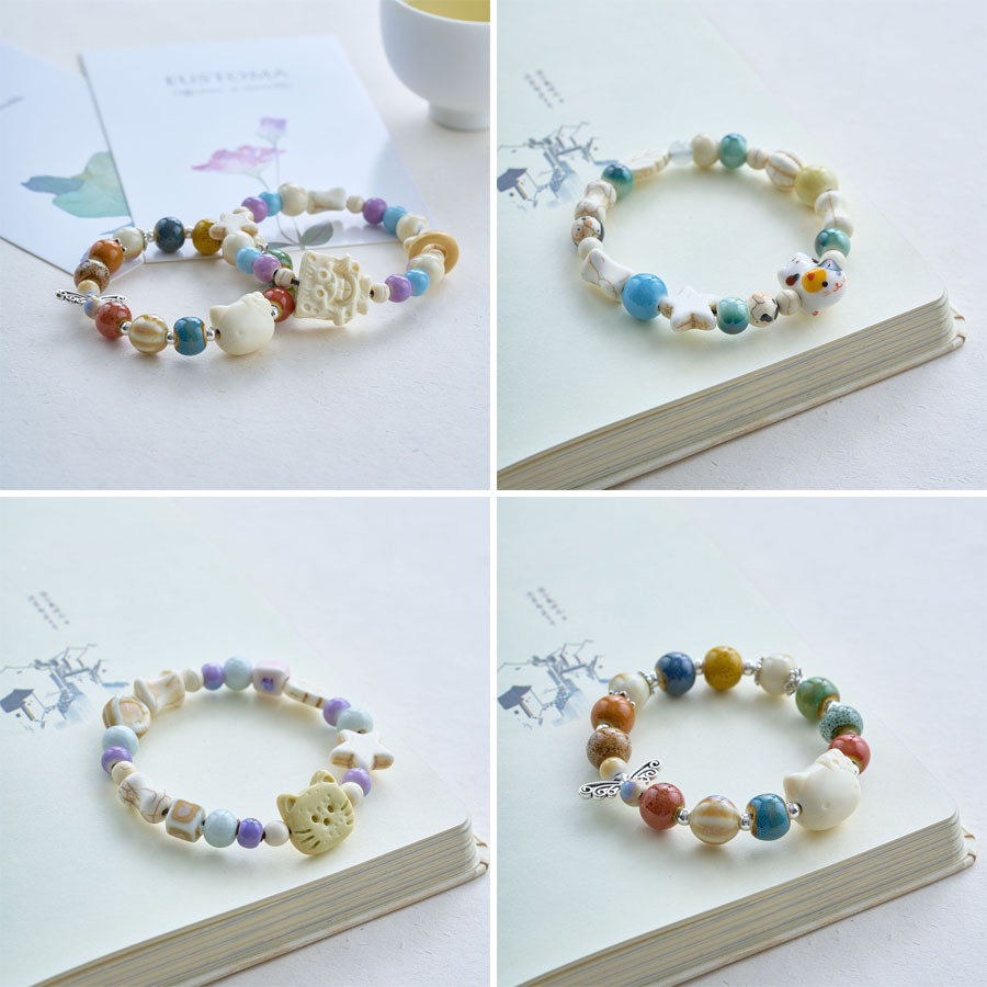 民族風の骨の陶磁器のブレスレットの女性の数珠の手の串の男性の新しい中国式のカップルの森系の学生の娘の蜜の小さいアクセサリ