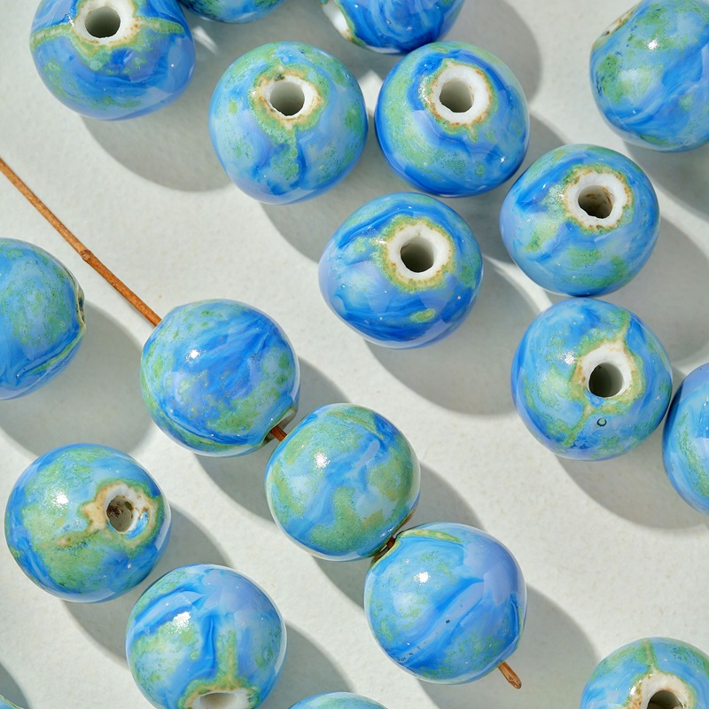 セラミックルースビーズブルーラウンドビーズ大穴磁器ビーズ半完成学生女の子 diy ブレスレットアクセサリー 16 ミリメートルラウンドビーズビーズ