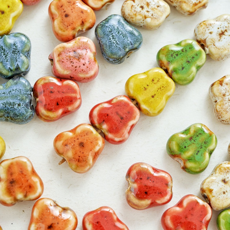 景徳鎮の小さい蝶の陶磁器の多色の新型の学生の女性のDIYの数珠の材料の14mmの大きい穴の散珠