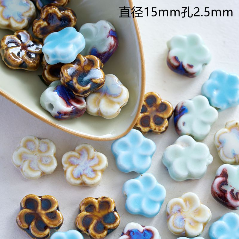 古風DIYヘアピンペンダント制作材料アクセサリー陶磁器梅ピース大穴ビーズ散珠学生女子ビーズ