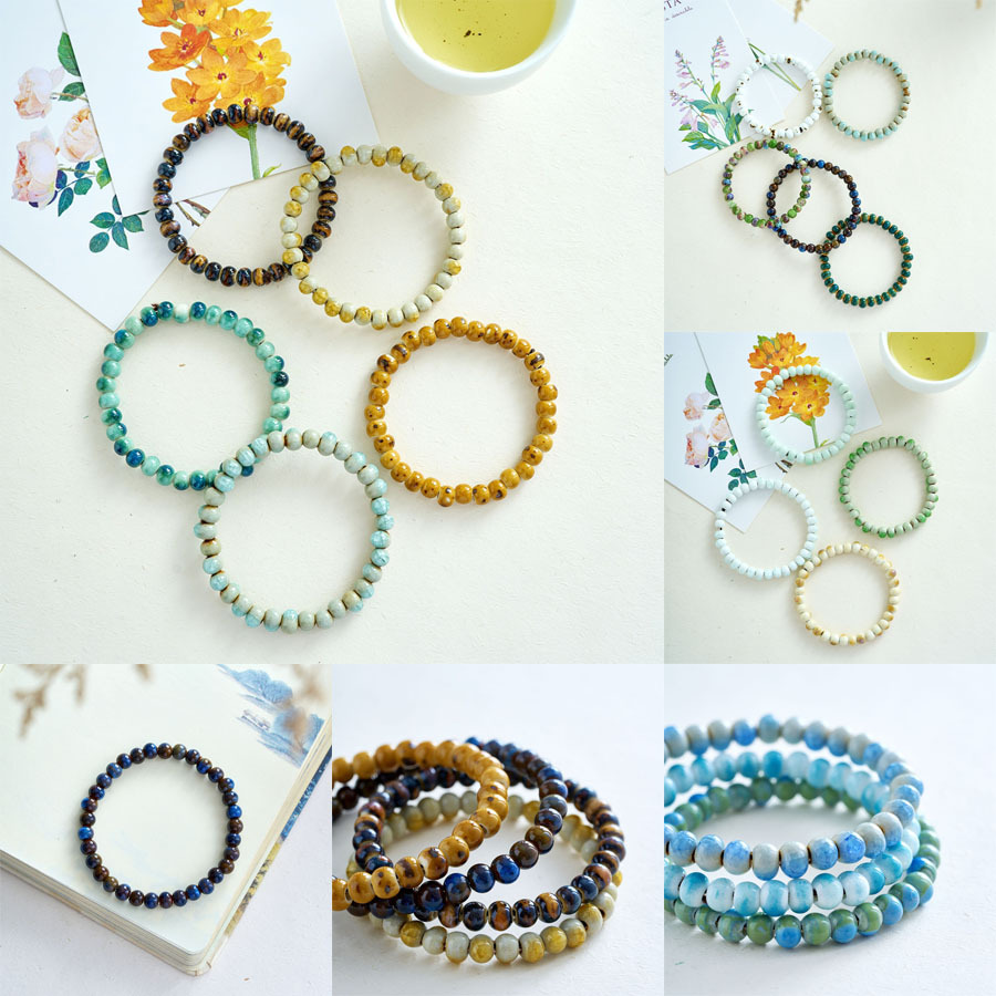 超細い6mmのブレスレットの玉の数珠のシングルサークルの文は手の串の女性の夏の陶磁器の新型の贈り物を遊んで屋台の商品の供給源の中国式を並べます。