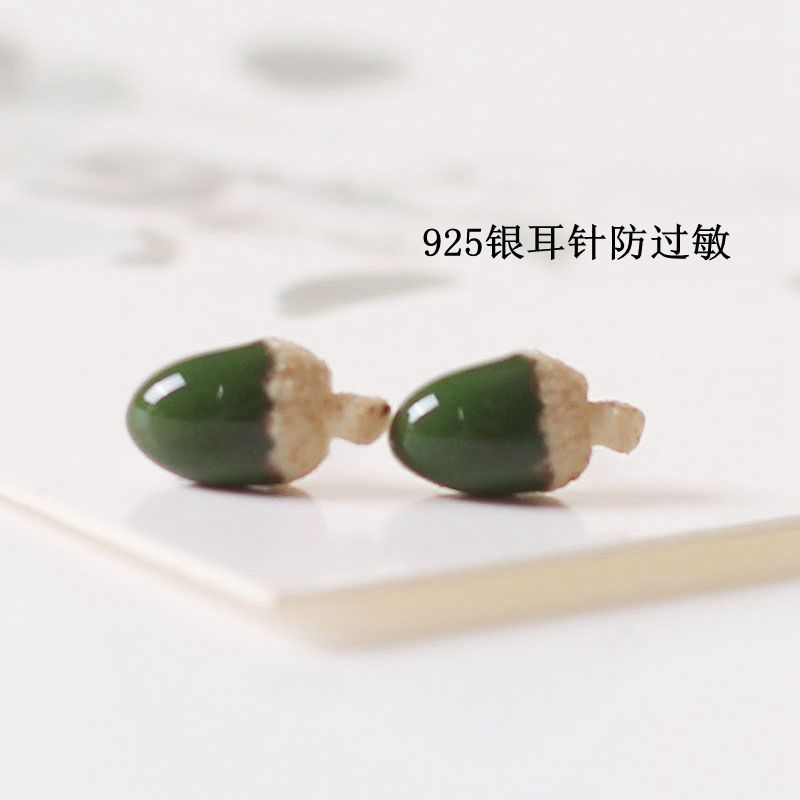 甘美陶磁器アクセサリー墨緑松果ピアスシンプル個性耳飾り学生女性ピアス925銀耳針