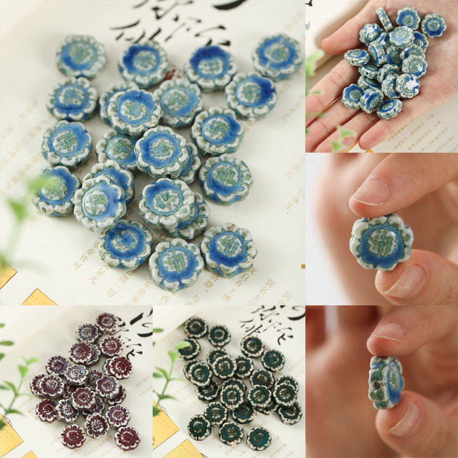 セラミックビーズ花釉薬バックビーズdiy編み材料ビーズビーズビーズブレスレット材料ビーズアクセサリー
