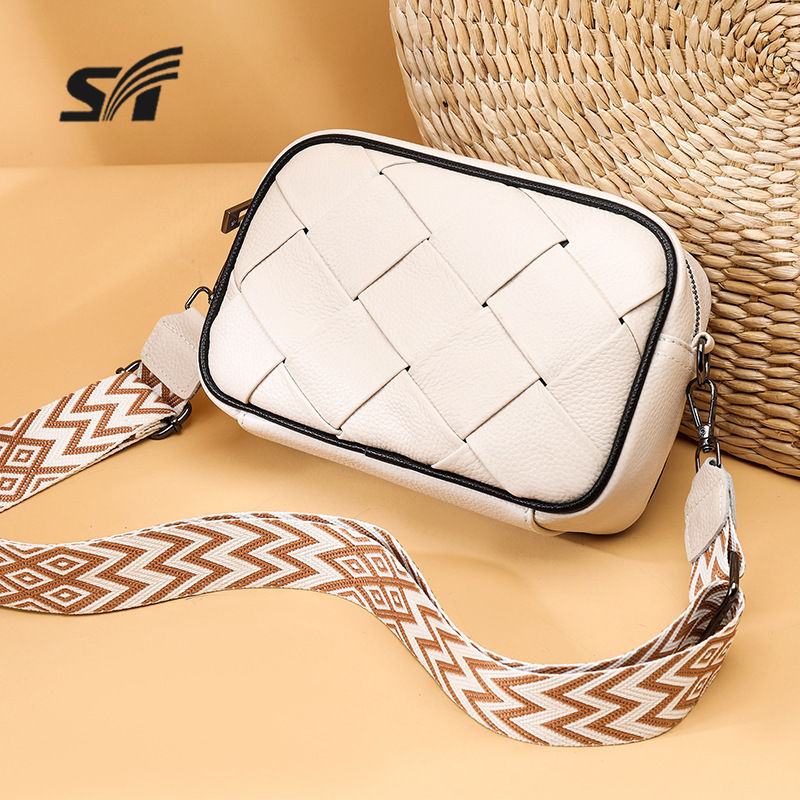 国境を越えた本革レディースバッグ、一層牛革製、シンプルでファッショナブルな編み込み菱形バッグ、高級感があり多用途なショルダー/クロスボディバッグ