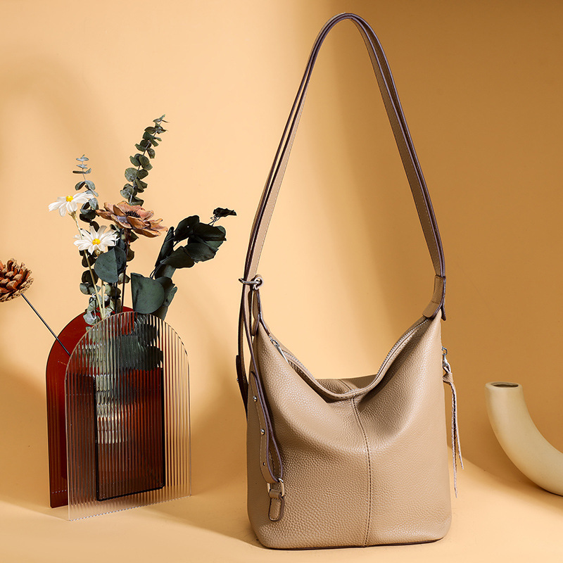 ファッショナブルなレディースバケットバッグ、新しい本革大容量ハンドバッグ、多用途カジュアル通勤ショルダークロスボディバッグ