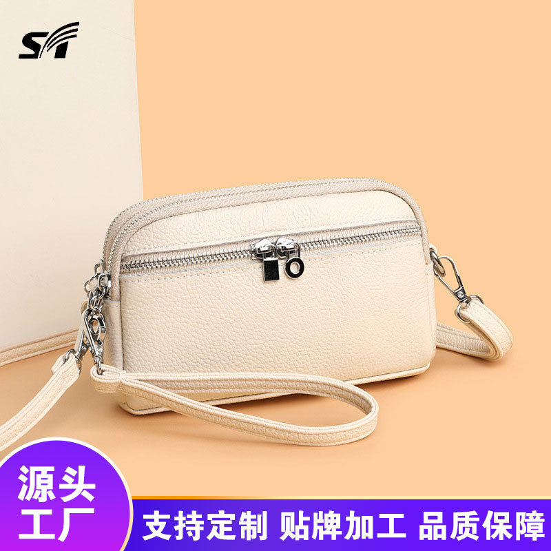 クロスボーダー本革レディースバッグ携帯電話小さなバッグ新しいファッションカジュアルニッチシングルショルダークロスボディバッグ第一層牛革クラッチバッグ