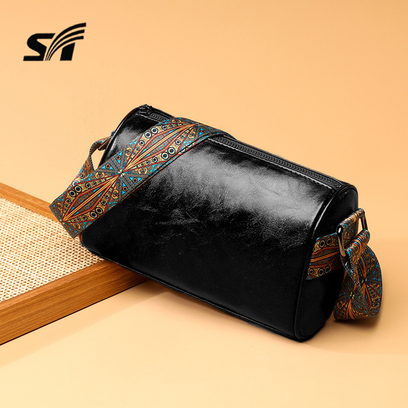 クロスボーダーレディースバッグヨーロッパとアメリカのレトロボストンピローバッグファッショナブルで多用途なワイドショルダーストラップテクスチャードショルダークロスボディバッグ女性用