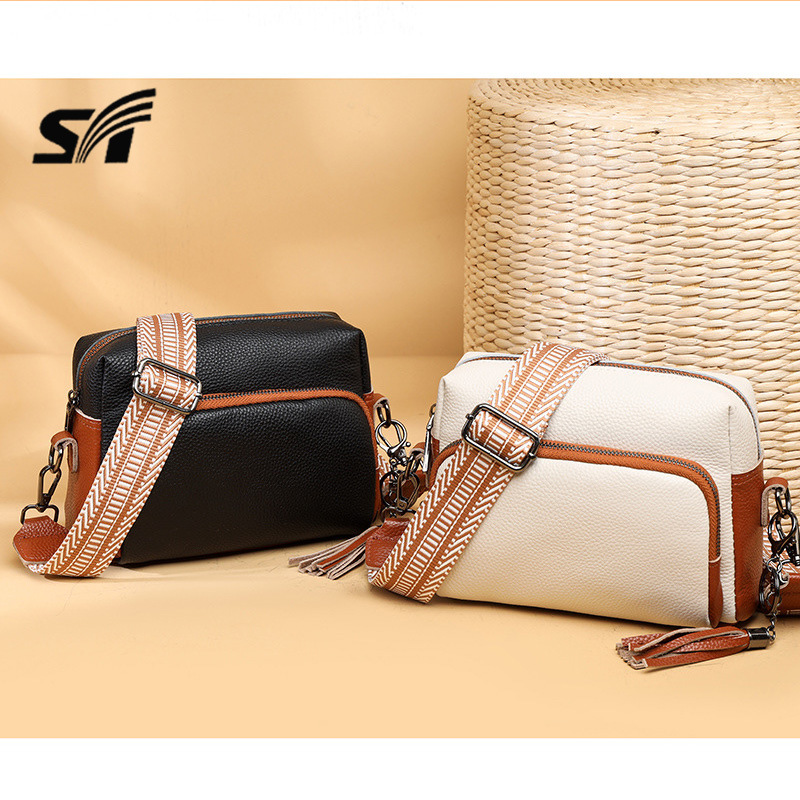 卸売りの柔らかい皮の斜めは国境を越えた本革のショルダーバッグの多機能カジュアルバッグの牛革の双ファスナーの縦型の女性バッグをまたがります。