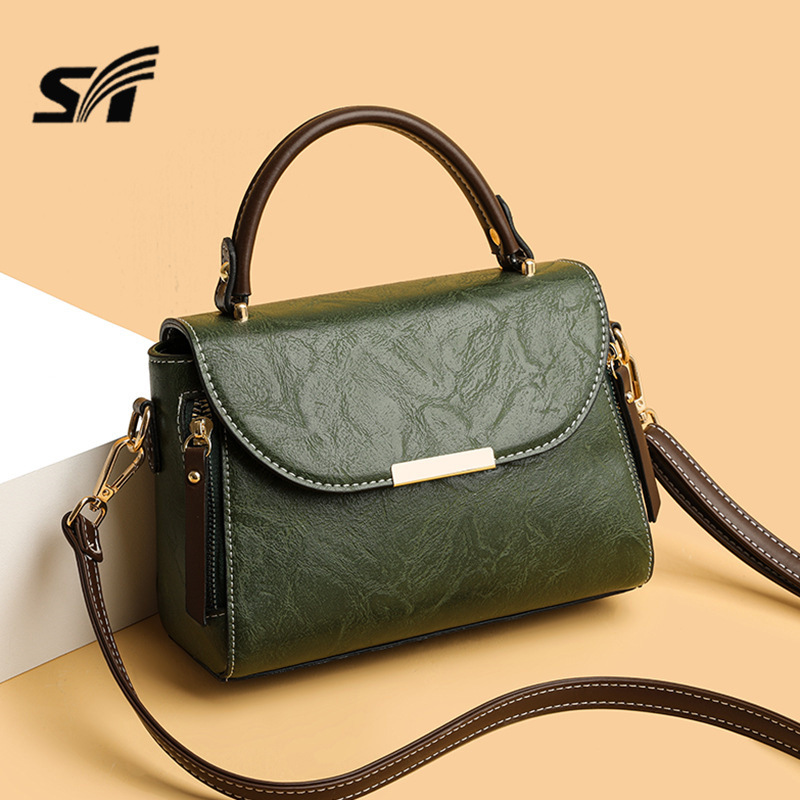 クロスボーダー牛革製レディースバッグ、ファッショナブルな本革レディースバッグ、レトロでシンプルで多用途なショルダー/クロスボディバッグ、質感のある小さめスクエアバッグ