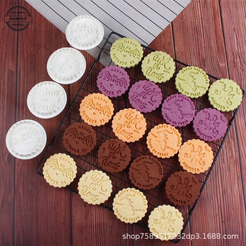 日本式円形ハロウィーンビスケット金型スプリングプレス家庭用サンドイッチ3d立体クッキー印鑑カット金型