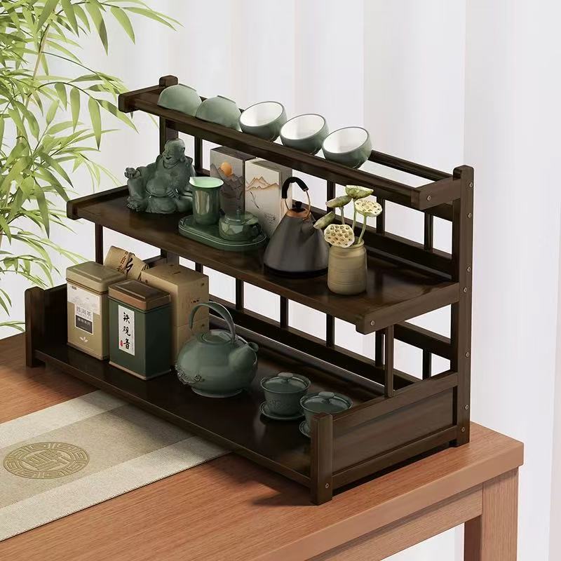 新しい中国風のティーカップホルダーデスクトップボーグラックシンプルな多層ティーセット小さなティーポット装飾品収納ラック