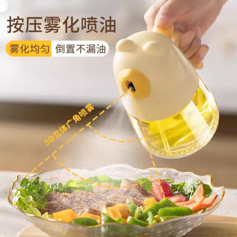 クマプッシュ式オイルスプレーボトル噴霧オイルスプレーボトル家庭用オイルコントロールエアフライヤーバーベキューオイルスプレーガラス小型オイルボトル