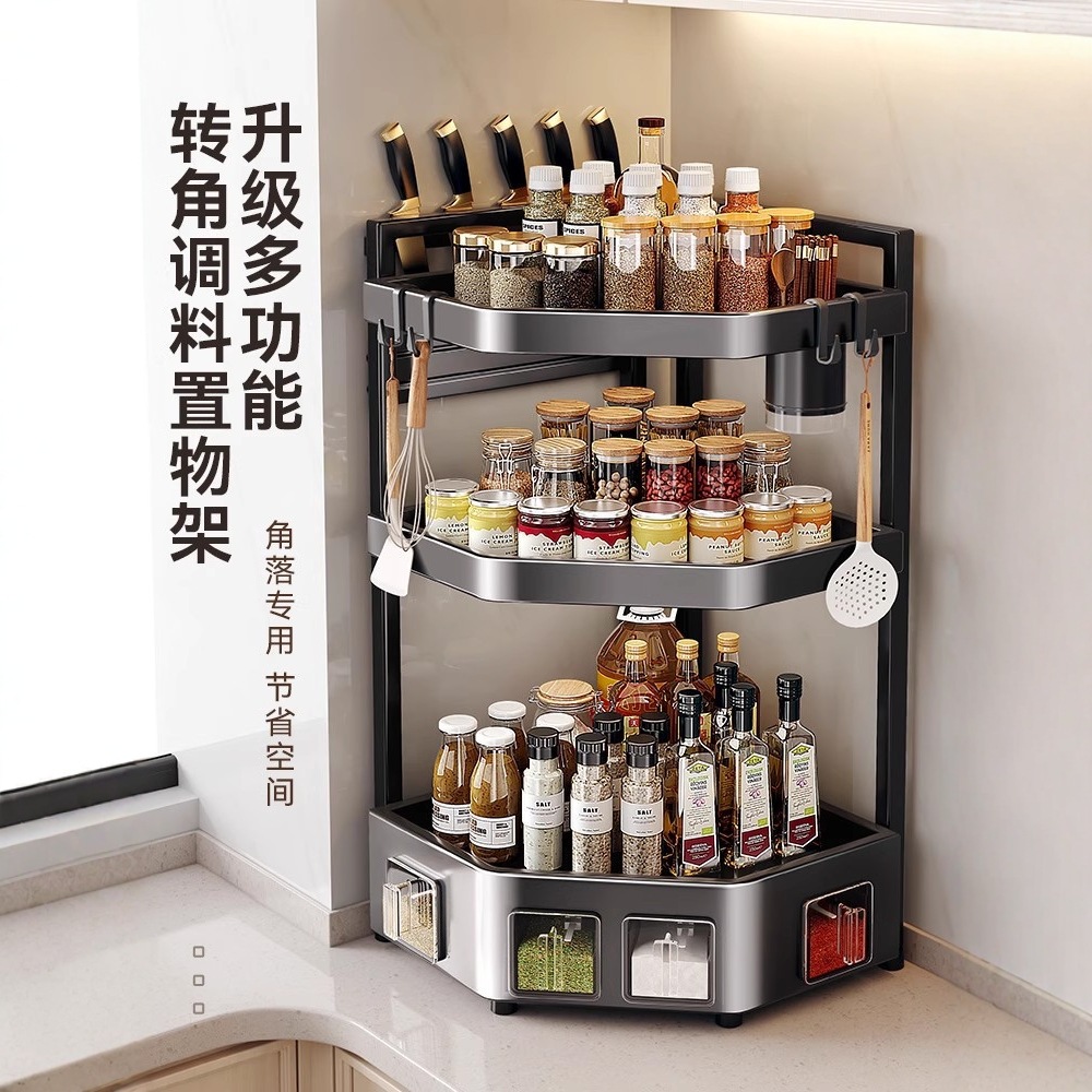 キッチンラックカウンタートップ三角形スパイスラック壁コーナー金属コーナー収納床パンチングなし棚卸売
