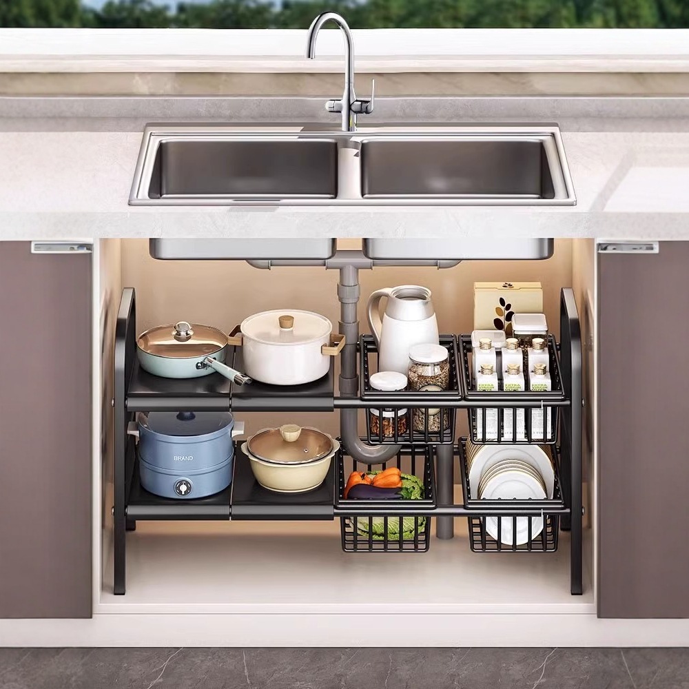 2025 新しいキッチン格納式シンク下収納ラックキャビネット層状炊飯器ポットラック多機能収納ラック