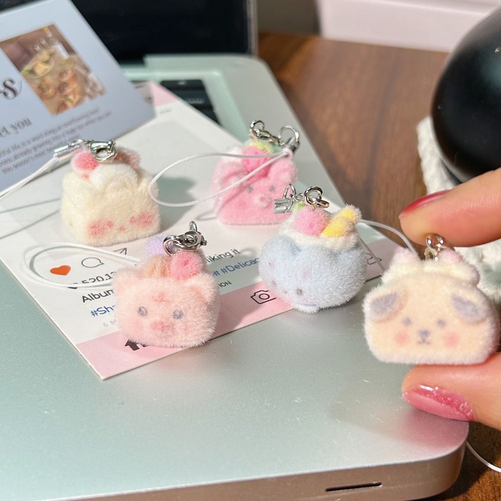 立体植毛ケーキストラップアニメ動物食遊びストラップ子豚ウサギバッグストラップかわいい甘いアクセサリー