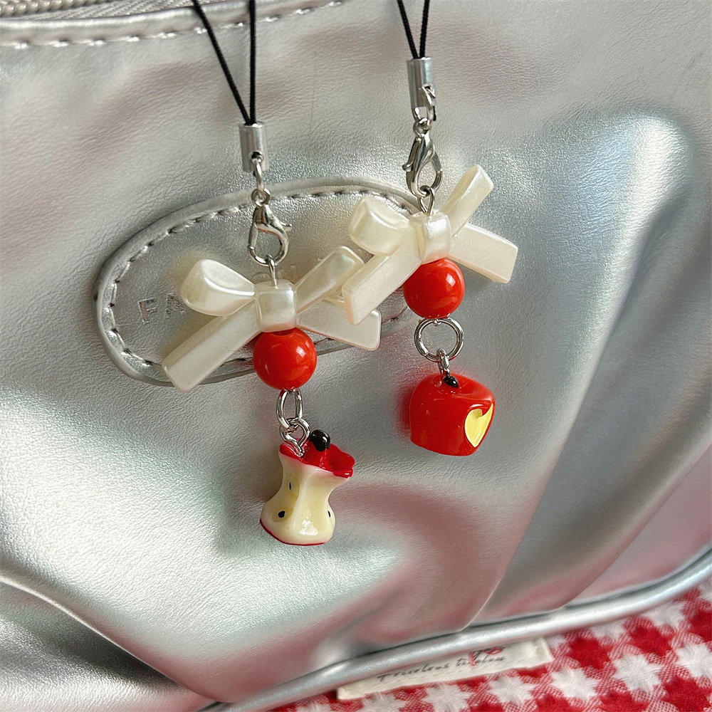 Miniリンゴの核ビーズストラップかわいい蝶結びの携帯電話の少女の心の甘い赤い愛のリンゴのペンダント