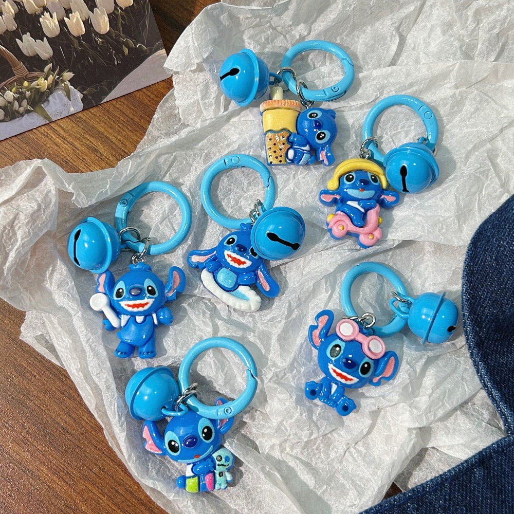 青い遊園地のスティッチ漫画のキーホルダーかわいい青い鈴のかばんストラップ学生かわいいアクセサリー