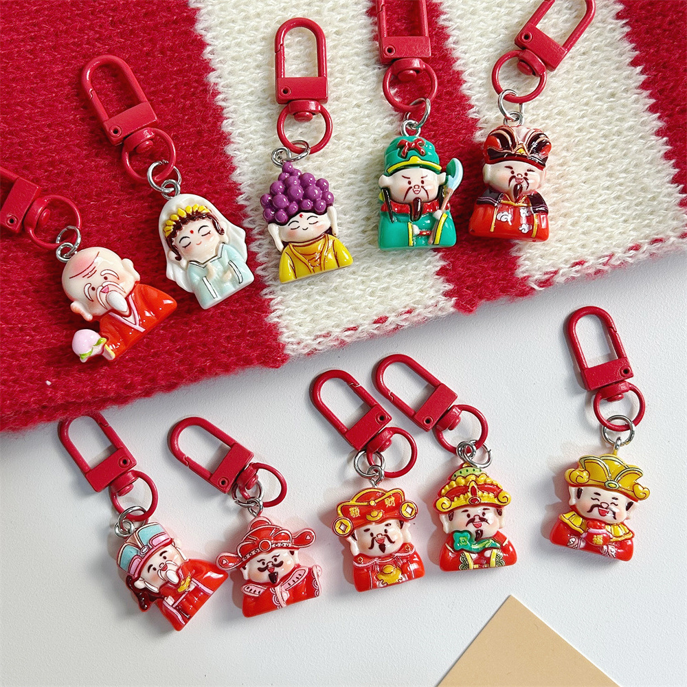 新年吉祥文字キーホルダー赤いお祝い財源ゴロゴロ福ペンダントdiyペンダント吉祥アクセサリープレゼント