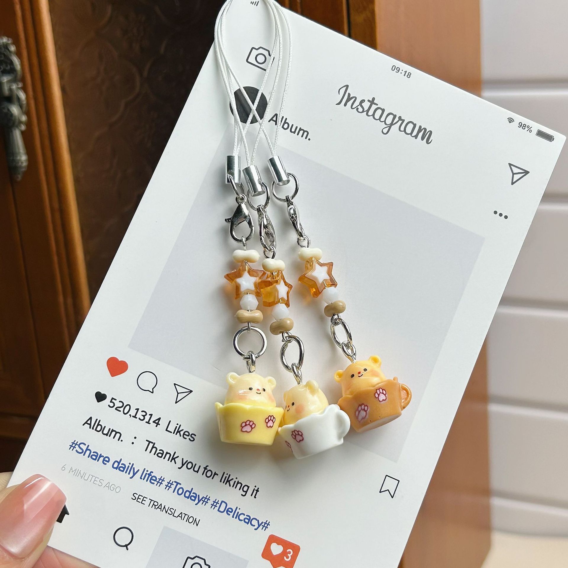 小紅の本の同モデルのアニメのコーヒーカップのバターの熊の携帯のチェーンのかわいい少女の心のカレー色の星のかばんのペンダント