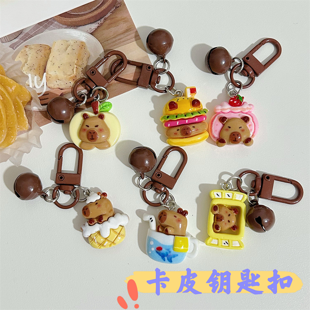 グルメのカピバラの鈴のキーホルダーはカレー色のグルメを掛けます。