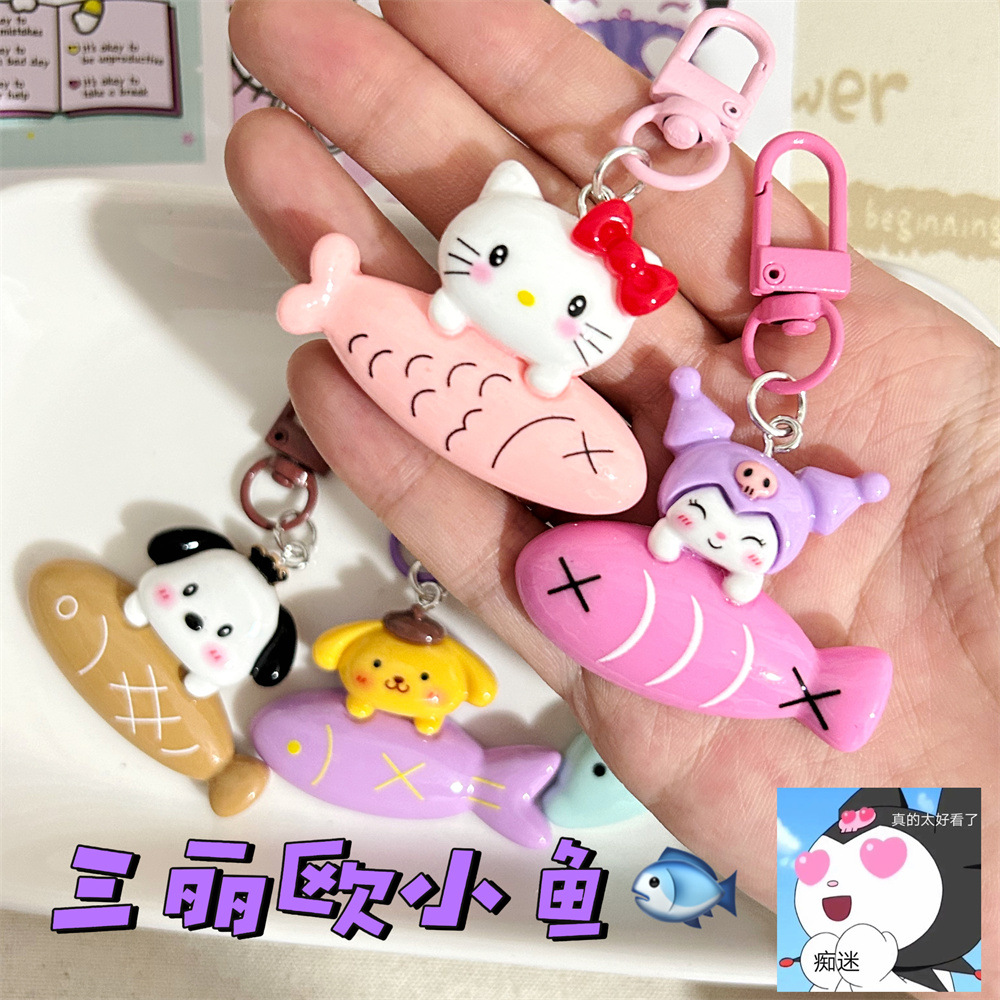 サンリオのかわいいアニメのキーホルダーの小魚少女の甘い学生のかばんのペンダントの親友のプレゼントはアクセサリーを責めます。