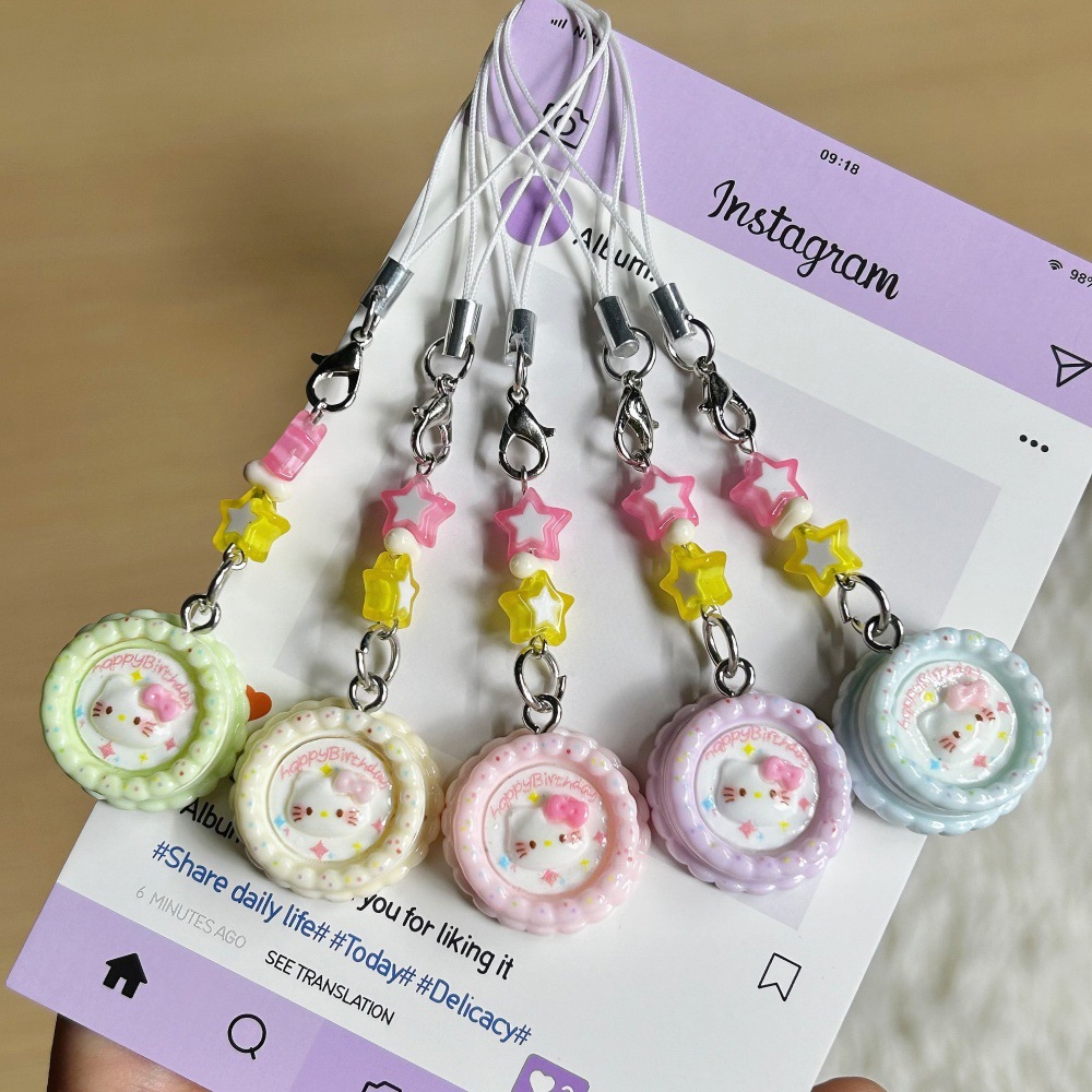 立体アニメの食べ物は猫のケーキのキーホルダーが可愛いです。