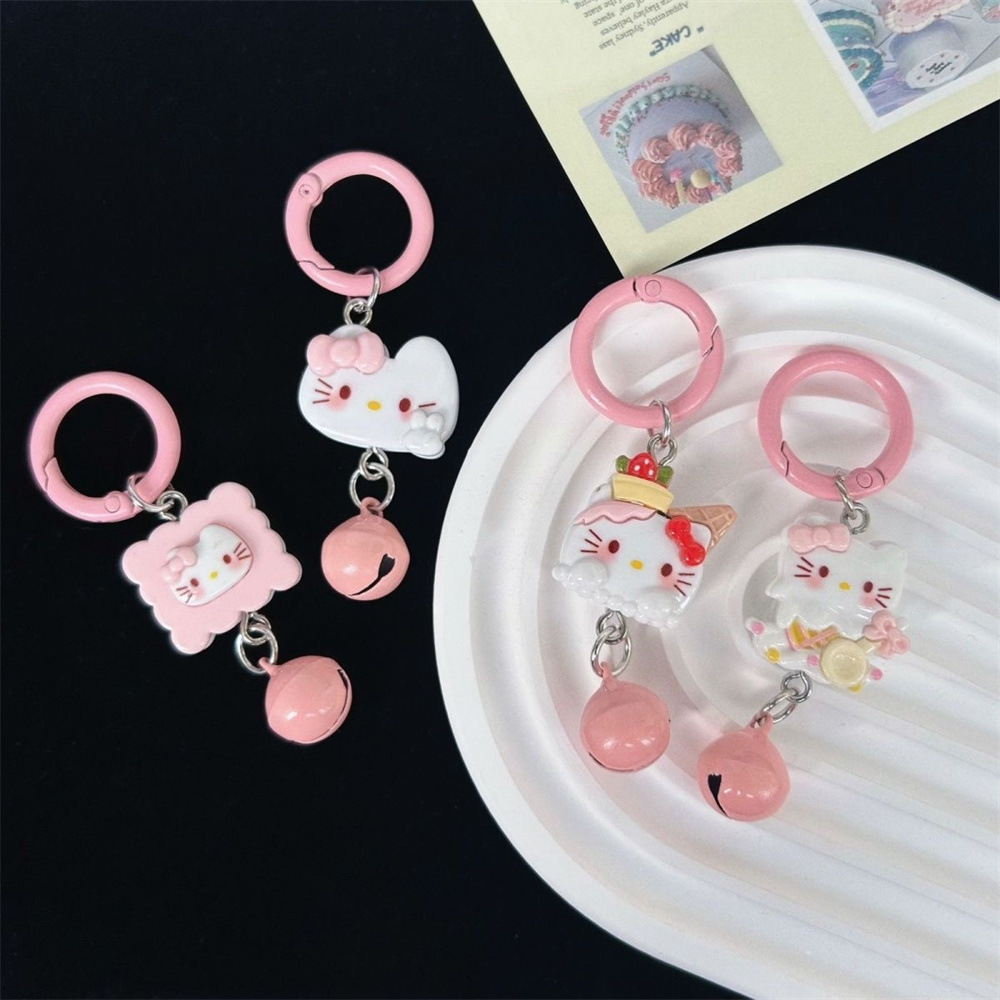 かわいいケイティ猫のキーホルダーピンクの少女学生のリュックサックの筆袋のペンダントの鈴のペンダントの漫画のカップルのアクセサリー