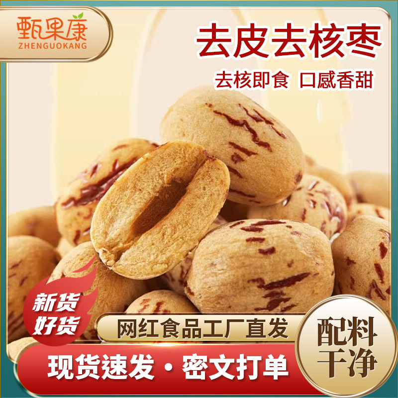 卸売皮むき・種抜き虎皮ナツメ、柔らかくもちもち甘い中空ナツメ、新疆若強種抜き・皮むきナツメ