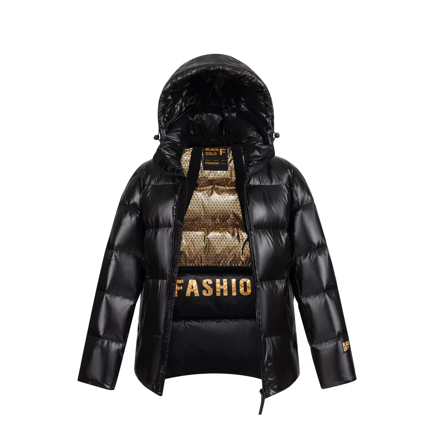 2025年冬新作 ブラックゴールド ダウンジャケット ショート丈 ロング丈 厚手 フード付き シンプル 男女兼用 カップル向け 光沢仕上げ ジャケット トレンド