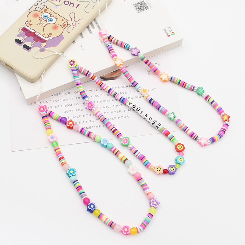 クロスボーダーのかわいい少女カラーの柔らかい陶器のビーズのチェーンのアルファベットの花卉の手は風を混ぜて携帯電話のチェーンのペンダントをなくします。