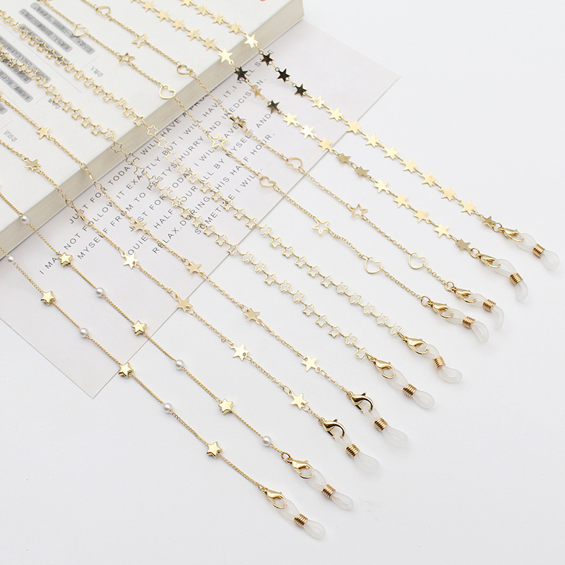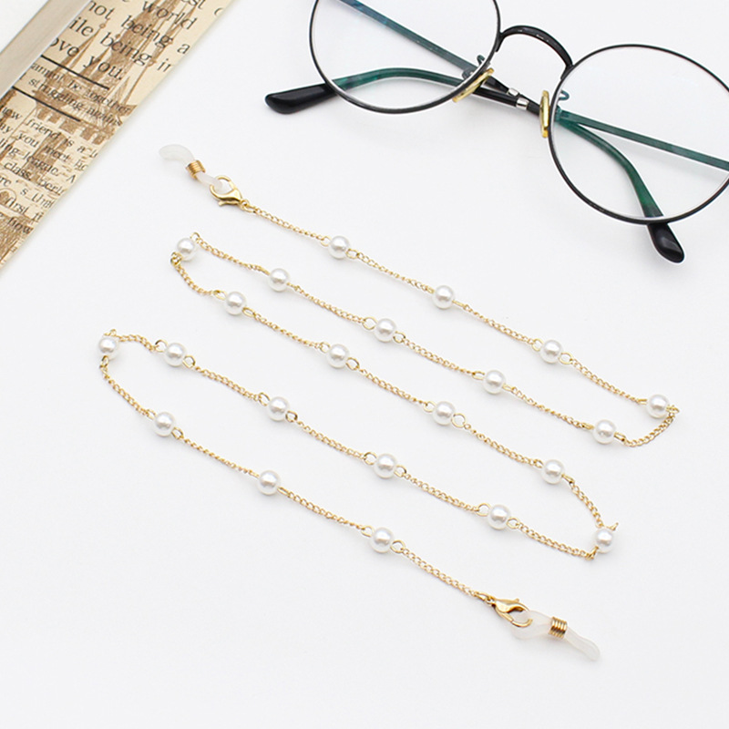 クロスボーダーシンプルメガネチェーンマスクストラップ高級感手作りパールチェーン金属滑り止め耳掛けメガネ紐